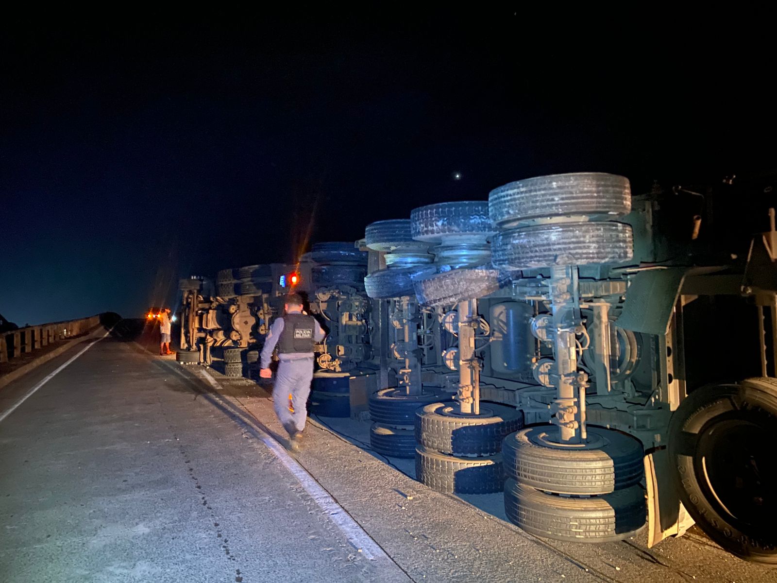 O veículo envolvido no incidente foi um cavalo trator da marca Volvo, modelo FH 460 6x2T, de cor branca e com placas do estado de Goiás. Ele estava tracionando um semirreboque quando o acidente ocorreu. Apesar da gravidade da situação, o condutor, um homem de 38 anos, não sofreu ferimentos.