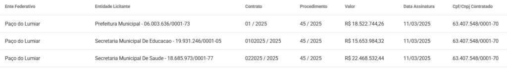 Em 2025, a Prefeitura de Paço do Lumiar registrou gastos expressivos com apenas três empresas, que já acumulou repasses de R$ 71,8 milhões na gestão do prefeito Fred Campos. Entre os beneficiados, destaca-se o empresário Edinaldo Lucena, que assegurou participação na administração por meio da construtora Praxis – Construtora, Obras e Serviços Ltda. Essa concentração de recursos em poucas companhias levanta questionamentos sobre a diversidade de fornecedores e a transparência nas contratações públicas, embora os contratos sejam formalmente licitados e os serviços atendam necessidades essenciais da população.