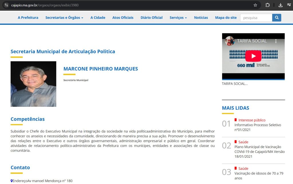 📌 Dono ocupa cargo na prefeitura O proprietário da empresa, Marcone Pinheiro Marques, também ocupa atualmente o cargo de Secretário Municipal de Articulação Política. Além disso, registros do Portal da Transparência indicam que ele recebe remuneração direta do município como médico, com salário bruto superior a R$ 15 mil mensais.