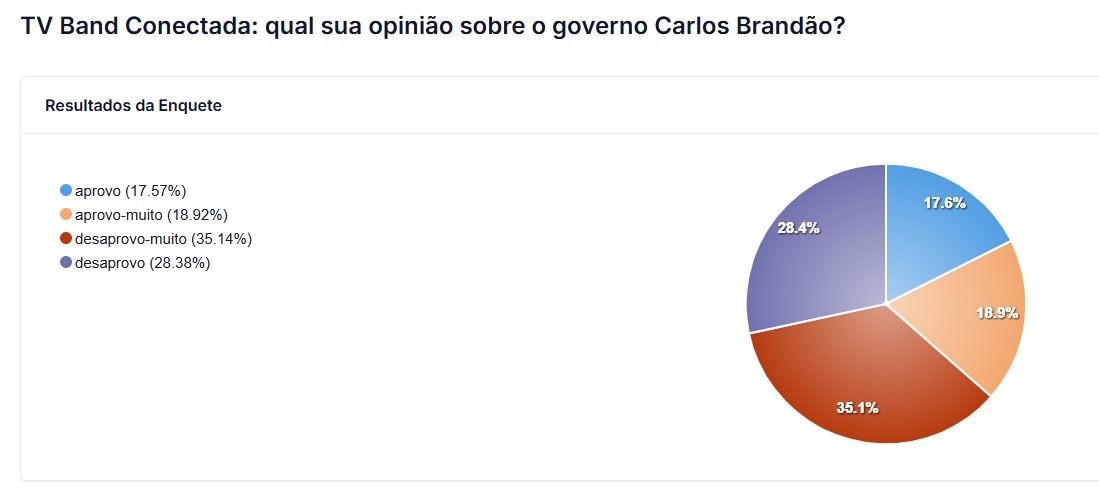 A TV Band Maranhão segue utilizando a nova plataforma TV Band Conectada para ouvir a opinião dos telespectadores em tempo real. Em uma das enquetes realizadas pela tecnologia interativa, o público foi convidado a avaliar o governo do governador Carlos Brandão.